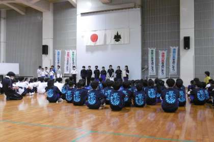 一緒に泊まった小学校のみなさんと一緒に夕べの集いや朝の集いを行いました。