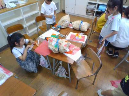 動物や魚など、色々なものに見立てて作品をつくっていました。