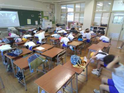 椅子に座って背筋を伸ばして、ストレッチのような運動をしました。