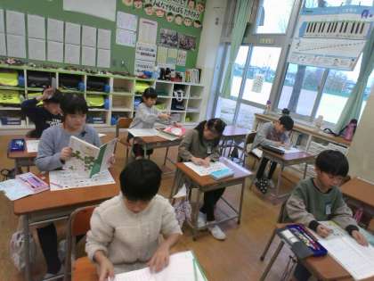 2学期もあっという間に最後の月となり、学習のたしかめも終えました。基本に立ち返って、カタカナの字形を確かめながら正しく書けるように復習しています。また、新しく習う漢字もひとつひとつ丁寧に、集中して練習しています。
