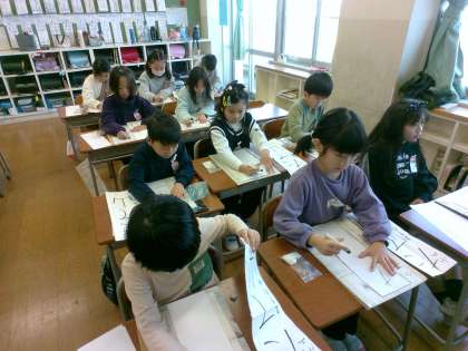 今日は書初め大会が行われました。冬休みの練習の成果を出し切ろうと、みんな集中して取り組んでいました。