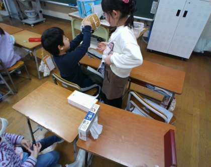 今日は2年生の子供たちが届いたばかりのグローブに触れてみました。