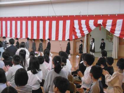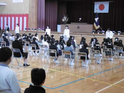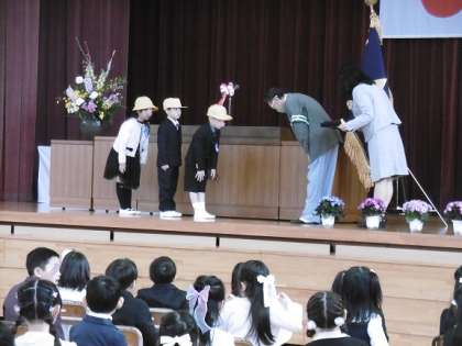 入学式では、体育館で、担任の先生から一人一人の名前を呼ばれると、元気に「はい」と返事をして手を挙げた1年生。来週月曜から、交通安全に気を付けて、楽しく学校に来てください。