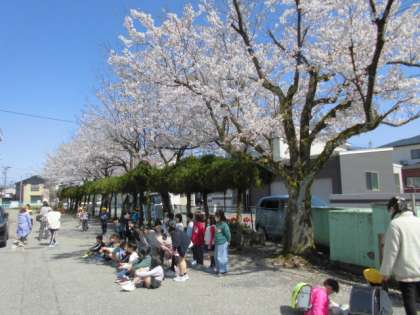 今週は桜が満開になり、プランターの花もきれいに咲きそろっており、学年やクラスごとに写真撮影をしています。みんなの笑顔も満開ですね。