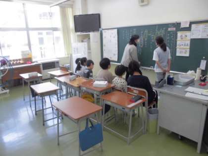 4年生は算数で、グラフや表について学習しています。また、学級目標を話し合っているクラスもありました。