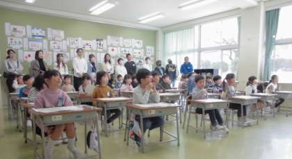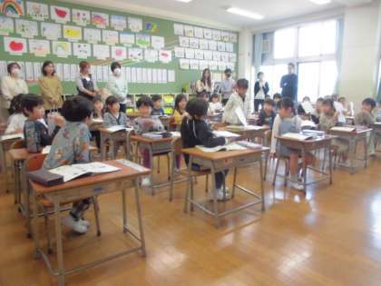 入学して初めて学習参観を経験した1年生。「うたにあわせてあいうえお」を練習し、家の人の前で上手に読むことができましたね! 保護者の皆様、ご参観ありがとうございました。ご家庭でも、お子さんの発表、作品、態度等の努力・成長をほめてあげてください。