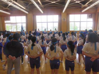 運動会に向けて全校が動き出しました。結団式では色団ごとに集まり、6年生が中心となって、スローガンや応援練習を行いました。6年生が下級生に声をかけたり、顔を真っ赤にして声を出したりする姿がたくさん見られました。運動会に向けて頑張ろう!