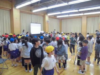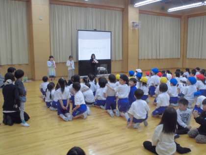 2年生が学校に関するクイズを出したり、自分たちができるようになった、なわ跳びやけん玉、演奏、歌を披露したりして1年生を楽しませました。「小学校は勉強だけでなく、こんな楽しい集会もあるのだね」「2年生さん、ありがとう」