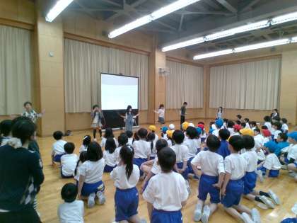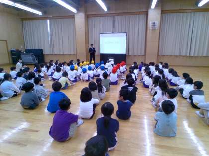 1年生に向けて、2年生が、入学お祝い集会をしました。1年生に学校クイズをしたり、できるようになったことを発表したりしました。1年生が楽しそうに集会に参加している姿を見て、2年生もとても嬉しそうにしていました。