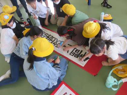 運動会前日の今日、各団のスローガンに一人一人メッセージを書きました。それぞれの願いを込めて書く6年生。今までの頑張りを思い出しながら書いていたことでしょう。最後に「最高の運動会にしよう」という思いを込めてみんなで円陣を組みました。小学校生活最後の運動会が最高のものになるように、みんなで頑張ろう!!