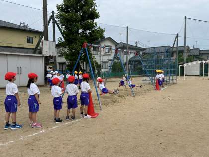1年生の体育では、ブランコやジャングルジムの遊び方を学習したり、みんなで鬼ごっこをしたりしました。広いグラウンドで思いっきり体を動かし、とても気持ちよさそうでした。学校に来る楽しみがまた増えたようです。