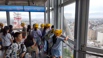 富山市全体を見渡す3年生