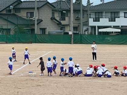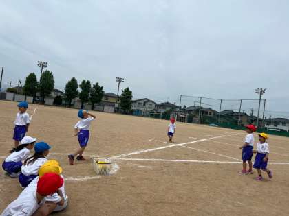 スポーツテストを頑張っています。先週は晴れていたため、ソフトボールをしました。先生の説明をよく聞いて、一生懸命に練習したり協力して球拾いをしたりする姿が素敵でした。