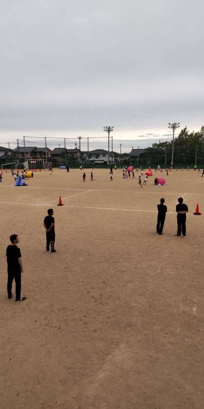 6月9日(日)、グラウンドでPTA主催の「逃走中」が実施されています。