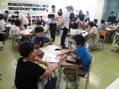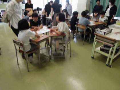 5年3組では「食材によって、ゆで方にちがいはあるか」という課題について、グループで話し合いました。「じゃがいもはゆでるのかな」「きゃべつは?」中には保護者の方からアドバイスを聞くグループもありました。家で調理してみるとよいですね。