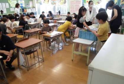 2年1組では、自分が植えて育てている野菜について、図鑑や本などで調べました。保護者の方と一緒に相談したり探したりする子もいました。休日にも、学校の畑の野菜に水やりをしたり、観察したり、苗の植え替えに来られたりする親子がみられますよ。