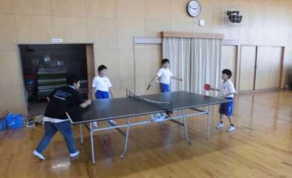 体育館でボール運動、ビーチボール、サブアリーナで卓球クラブの活動の様子。みんな楽しそうです。