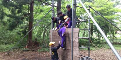 ウォールという壁を、みんなで協力して登ります。全員、乗り越えた班もありました。