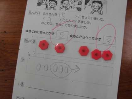 6月の学習 1年3組「のこりはいくつ」