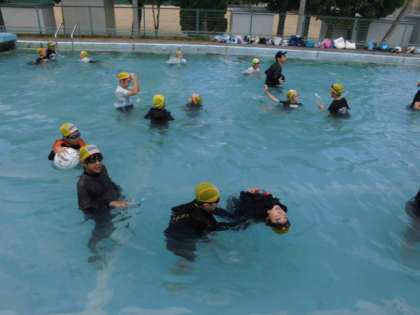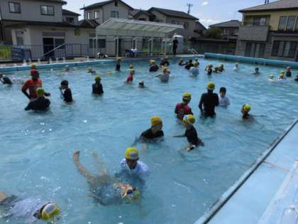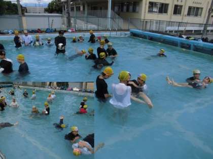 6年生が、授業としては小学校最後の水泳学習「着衣泳」をしました。水着の上に服を着て、泳ぎにくさや重さを体験したり、ペットボトルやボールで浮く練習をしたりしました。夏休みのプール開放にも来て、小学校で最後の水泳を楽しみましょうね。