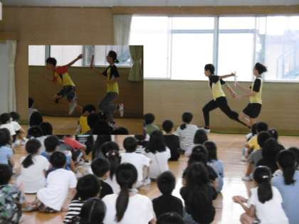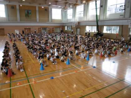 朝、終業式をアリーナ(体育館)で行いました。全校児童が集まって、授賞伝達を行い、1学期にがんばったことなどを聞きました。県優勝したリレーメンバーのバトンパスも披露されました。