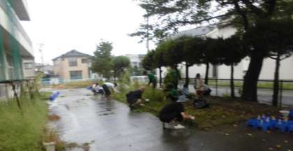8月18日(日)小雨の中、約40人ほどの親子が参加して、親子除草をしていただきました。校舎前の花壇や畑の除草をしてくださって、大変きれいになりました。休みの朝にもかかわらず、本当にありがとうございました。