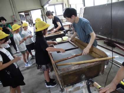 4年生は、八尾町の施設の見学を通して、伝統や文化に触れてきました。紙漉き体験では、一人一人が紙漉きをし、オリジナルの和紙社を作りました。また、曳山や養蚕に関する展示を見て、社会科で学んだことをさらに深めました。昼は、公民館で仲良く弁当を食べました。ご家庭で、弁当の準備等、ありがとうございました。