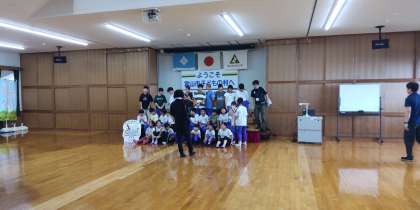 1組記念撮影です。これから、村内オリエンテーリングです。