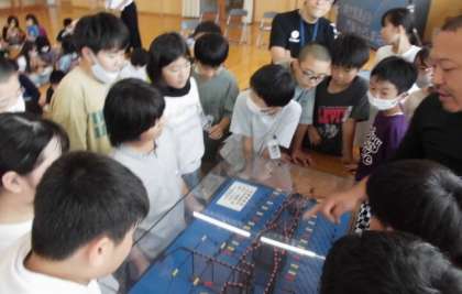 四方漁港の漁師さんに学校へ来ていただき、5年生が、漁業について話を聞いたり、定置網の模型を見せてもらったりしました。「定置網の長さは900mもあるんだって」「シイラなど昔はとれなかった魚が最近とれるそうだよ」街の子、山びこっ子が、海や魚について学んでいます。