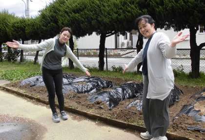 休校が終わったら、学級で話し合って、植える野菜を決めます。一人一人は、鉢を使って自分の野菜を育てますが、学級菜園は、鉢では育てにくいものも育てられます。おいしい野菜を育てましょう。育てた野菜で野菜パーティーをする日が楽しみですね。