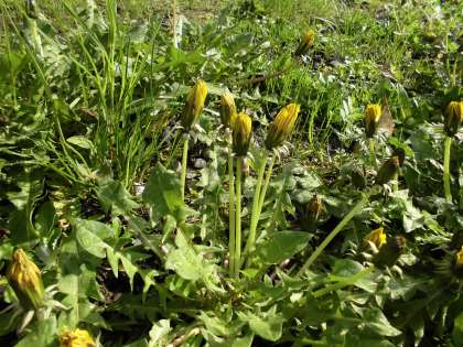 これからさくのかな? 雨だからかな? 花がとじてしまっていますが、黄色いかわいい花がさきます。なんの花でしょう。