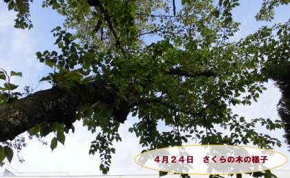 まん開だった桜の木は、緑の葉っぱをたくさんつけていましたよ。今週は雨がふって寒い日も多かったけれど、来週はあたたかい日が続くようです。