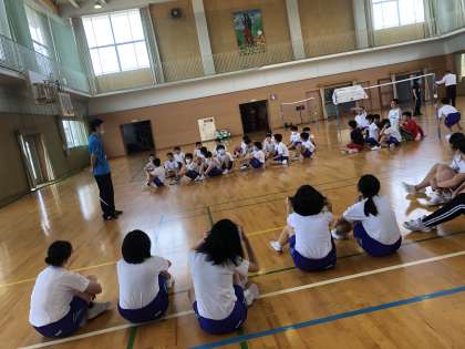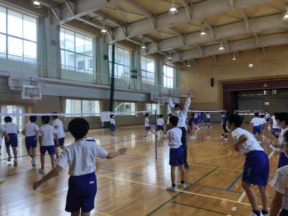 体育では学年でビーチバレーをしました。校長先生も参加し、楽しく体を動かしました。Bグループの人は木曜日に行う予定です。ぜひ楽しみにしていてください。