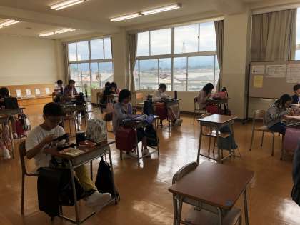 久しぶりに登校した子供たち。「身長が伸びて先生と同じくらいだよ」「家でお手伝いたくさんしたよ」「宿題が大変だったよ」などといろいろなお話を聞かせてくれました。分散登校の初日、それぞれの教室で時間割に沿って学習を進めました。すかすかの教室は子供たちにとって、とても新鮮だったようです。