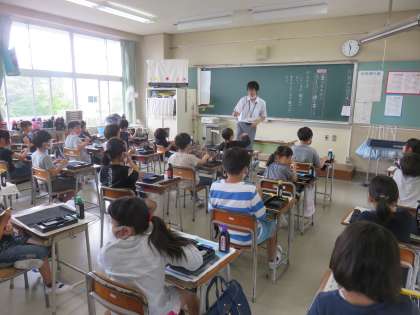 3年生から書写の学習が始まります。前回は習字道具の準備や片付けまででしたが、今週はいよいよ墨汁を出して、半紙に書きました。色々な線を筆で書き、楽しく学習していました。早く字を書きたいですね!