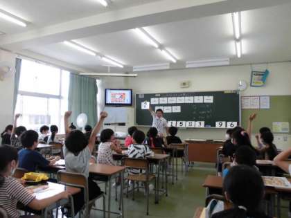 3年生から外国語活動が始まりました。外国語専科の先生と楽しく学習しています。今日は、英語で数字の言い方を学びました。