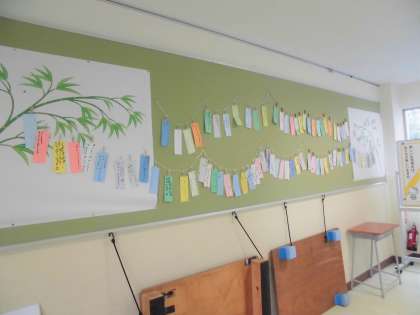 学年の掲示板に飾りました。それぞれの想いが詰まった短冊の願いが叶うといいなと思います。