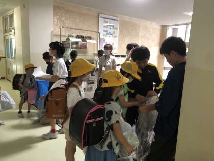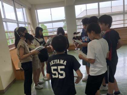 6年生は5年生と協力して委員会活動を頑張っています。今週も朝の時間や休み時間にいろいろな場所で活動する姿が見られます。運動委員会「ダッシュ王選手権」の司会進行をしている様子、情報委員会がお昼の放送の練習をしている様子、ボランティア委員会がアルミ缶回収をしている様子です。