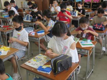 心を込めてつくったティッシュケースを家で見てあげてください。2学期から使うのが楽しみですね。