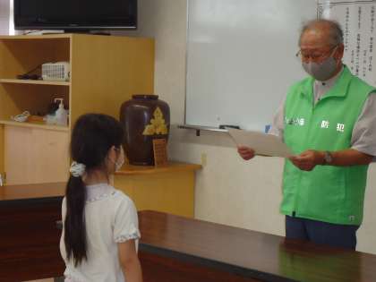 防犯標語優秀作品に選ばれた児童の表彰式が行われました。山室中部防犯組合連合会の方々や山室中部小学校PTA会長さんから、防犯についてのお話をいただきました。標語を意識して、みんなの力で明るい町づくりを目指していってほしいです。選ばれた防犯標語は、学校の児童玄関や各学年のコーナに掲示してあります。