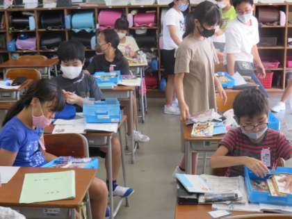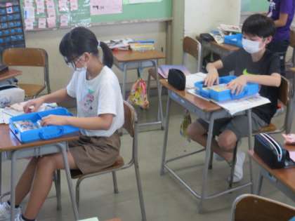 家庭科では整理整頓の学習をしています。「整理とは身の回りの物を見直し、必要でない物を取り除いて整えること」「整頓とは物を使いやすい場所に置くこと」 という意味を知りました。そして、自分で計画を立てて、道具箱を整理整頓しました。それぞれの工夫を伝え合い、学びを深めました。