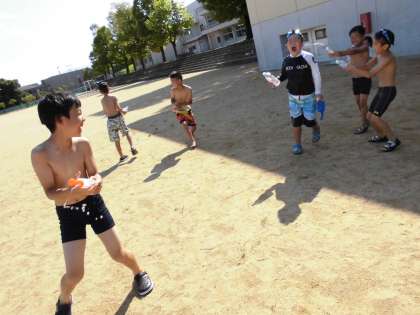 ペットボトルの底にたくさん穴を開けて、シャワーにできるよう工夫してくる子もいて、暑い日々を友達と楽しく過ごそうと考えているなあと感心させられました