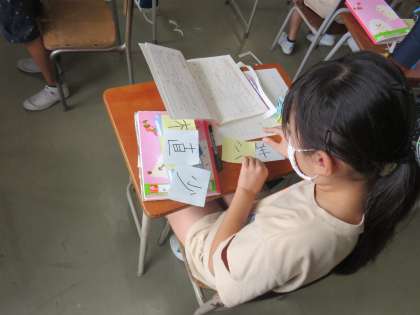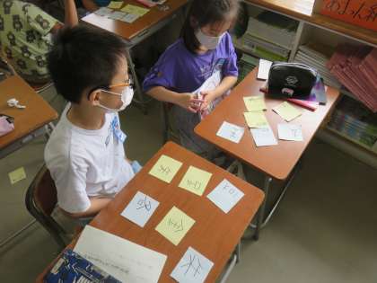 国語科では漢字の「へん」と「つくり」について学習しています。今日は「へん」と「つくり」に気をつけながら漢字パズルを作り、友達に解いてもらう活動をしました。学習したことを生かし、楽しんで活動する子供たちでした。