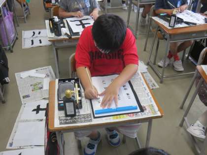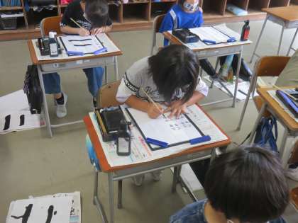 3年生から始まった書写の学習。2学期は自分の名前を書く練習をしています。お手本をもとに、ていねいに集中して書いていました。