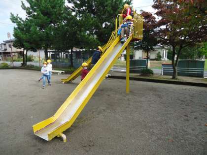 町村公園では、広い公園を走ったり遊具で遊んだりして、生き生きと活動していました。近所の公園に土管がない子供は、土管にのって楽しみ、ドラえもんの世界を味わっていました。