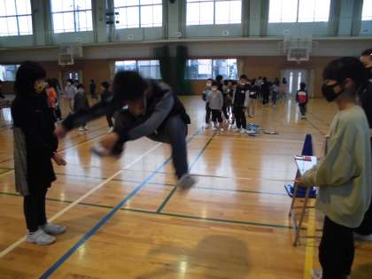 運動委員会主催のスポーツ週間が始まり、初日は2年生の番でした。縄跳びや的当て、ゴム跳び等、跳ぶ・投げる・マット等の様々な運動を楽しみながらできるように、運動委員が場を準備して、優しく教えていました。その中で、いろいろな種目に挑戦し、スタンプをもらって大喜びの2年生でした。