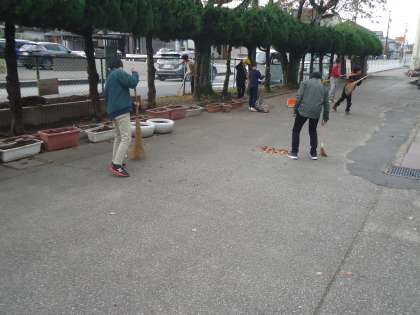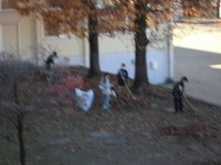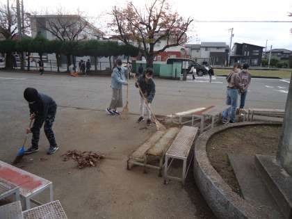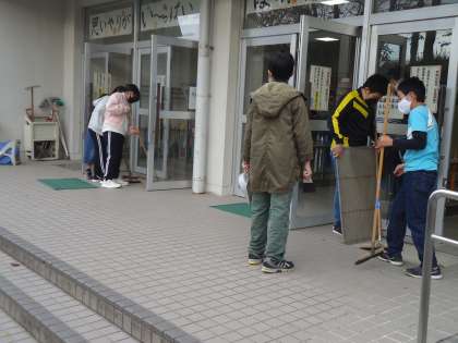 落ち葉拾いをしている子供、プランター台置き場の下を掃除している子供、玄関掃除をしている子供、今朝の校庭は、6年生も参加し、奉仕活動をする子供たちであふれていました。4年生のがんばっている姿に気付き、自分たちも始めようとした姿、汚れた箇所を見付け、やるべき仕事に気付く姿、さすが6年生だと感じました。