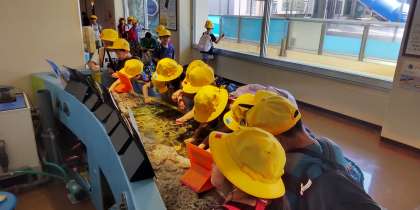 おそるおそるヤドカリや小魚を触ります。