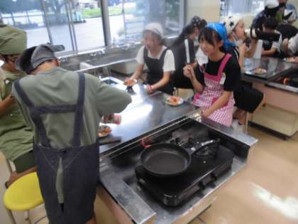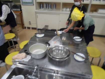 10月4日(金)6年2組が家庭科で調理実習をしました。人参、えのき、アスパラなどをベーコンで巻いて焼き、塩こしょうで味付けをしました。とてもおいしきできましたね。「家でもつくってみよう」