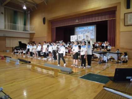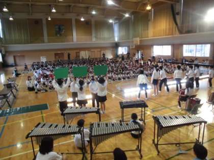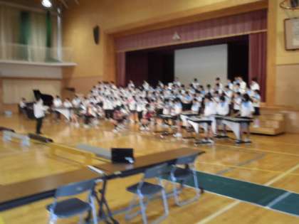 5年生の合奏・合唱です。毎日、練習を頑張りました。全校で聞いて、見合いました。